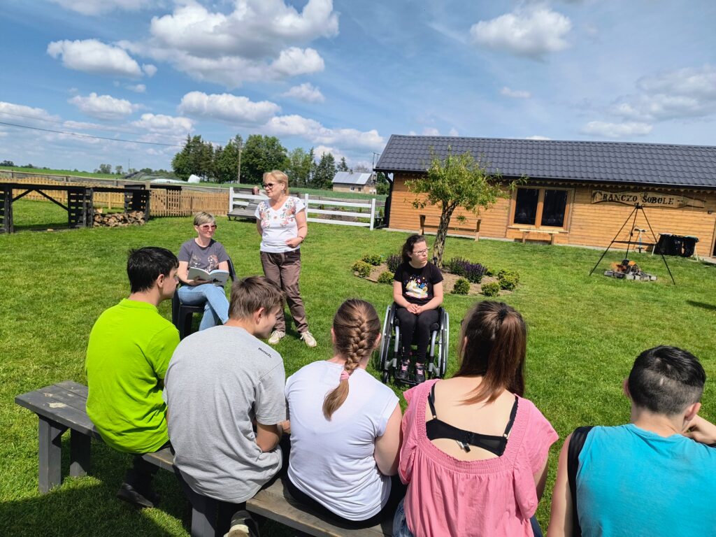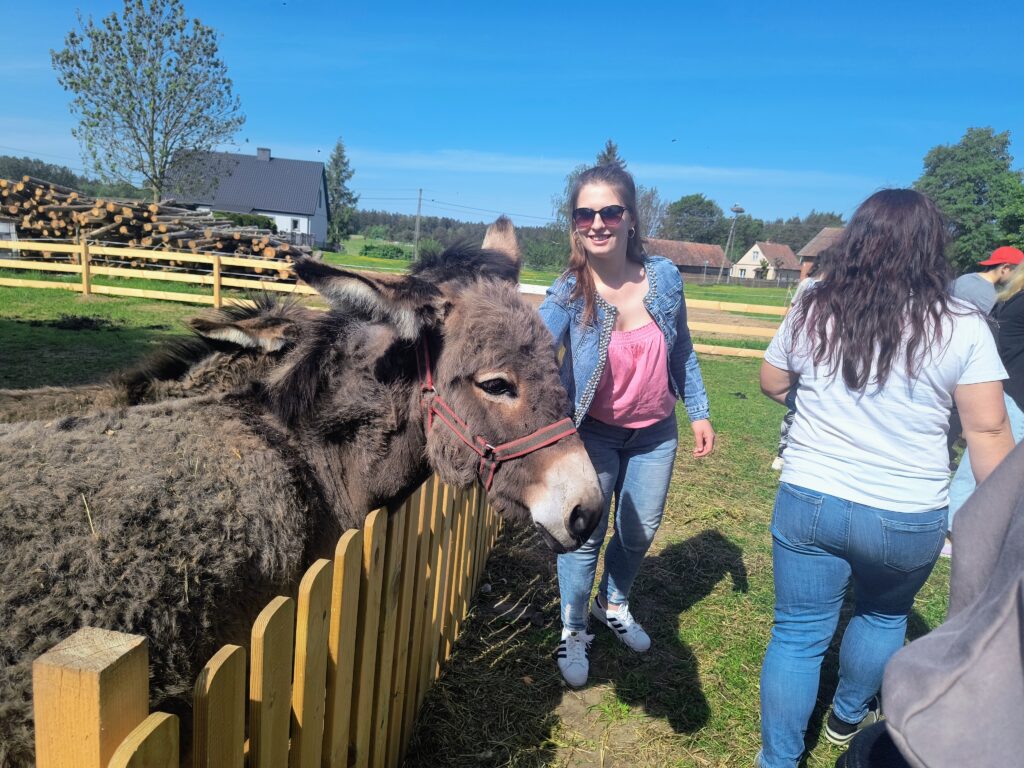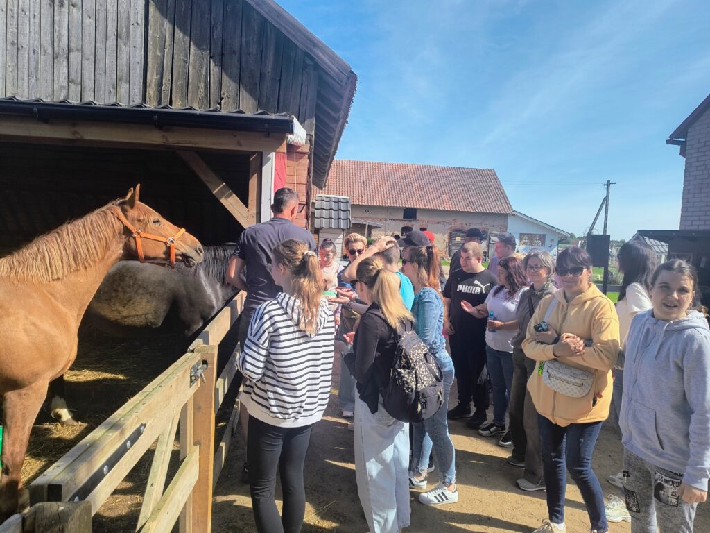 W tym roku w ramach obchodów Dnia Dziecka, Rodzica i Opiekuna 28.05.2025 udaliśmy się do Alpak w Sobolach. Zwiedziliśmy Mini ZOO, poznając różnorodne gatunki zwierząt, a wśród nich alpaki, lamę, osiołki, kozy, puchacze, króliki, ptactwo domowe, papugi, lemury, krowy i wiele innych. Niesamowite wrażenia dostarczyła nam możliwość pokarmienia zwierząt marchewkami oraz pogłaskania ich. Mieliśmy okazję wsłuchać się w wydawane odgłosy i poobcować ze światem zwierząt. Ranczo w Sobolach to również szereg atrakcji ruchowych – trampolina, hamaki, huśtawki, zjazd tubingowy, tyrolka, plac zabaw a nawet dmuchańce. Była też część artystyczna – przygotowana przez uczniów – piosenki z układami tanecznymi. W tym roku wzięliśmy po raz pierwszy udział w akcji „Czytanie na polanie” – wiersze Józefy Drozdowskiej czytali uczniowie, rodzice i nauczyciele, a ich wspólne słuchanie w tak pięknych okolicznościach przyrody było wyjątkowe. Na zakończenie odbyło się ognisko integracyjne z kiełbaskami i słodkimi niespodziankami. Przedsięwzięcie nie było by możliwe bez funduszy przeznaczonych przez Powiat Augustowski, Radę Rodziców i Stowarzyszenie Przyjaciół Zespołu Szkół Specjalnych „Wśród Nas” w Augustowie w ramach realizacji zadania publicznego współfinansowanego przez Gminę Miasto Augustów „Kultura i rekreacja wsparciem rodzin z osobą z niepełnosprawnością”. Wszystkim sponsorom i organizatorom bardzo serdecznie dziękujemy.