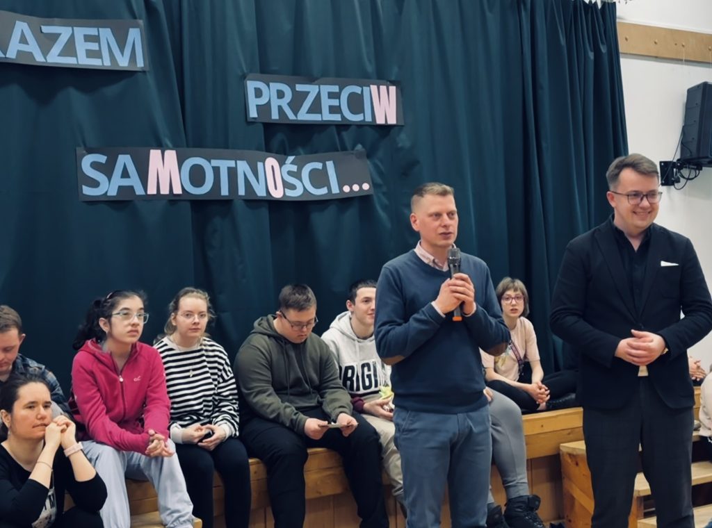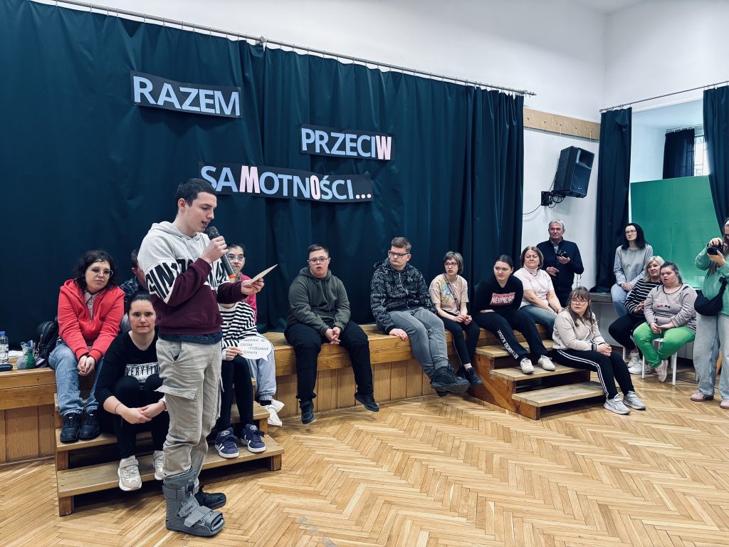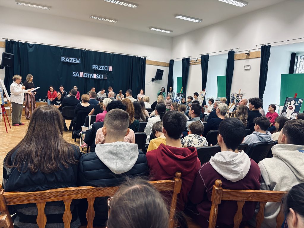 Tegoroczny temat był szczególnie trudny i ważny – „Razem przeciw samotności”. To hasło stało się punktem wyjścia do głębokiej refleksji, rozmów i niezwykłych emocji. 10 szkół i placówek – 10 poruszających prac pod wspólnym tytułem „Czym dla mnie jest samotność”. Każda z nich była inna, a jednocześnie tak bardzo podobna… bo samotność może dotknąć każdego z nas – niezależnie od tego, kim jesteśmy i jakie życie prowadzimy. Wysłuchaliśmy wielu wystąpień – młodszych i starszych uczestników. Wszystkie były równie ważne, szczere i mądre. Mówili o swoich doświadczeniach, uczuciach i sposobach radzenia sobie z samotnością. Były wzruszenia, łzy i wiele poruszających momentów… ale też ogromna siła wspólnoty. To spotkanie było czymś więcej niż wydarzeniem – było przestrzenią spotkania, integracji i zobaczenia świata z innej perspektywy. Pozwoliło lepiej zrozumieć drugiego człowieka i jego codzienność.