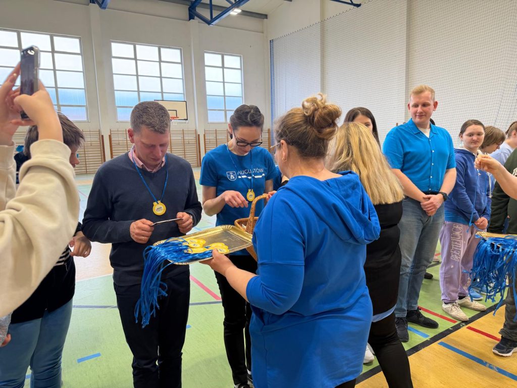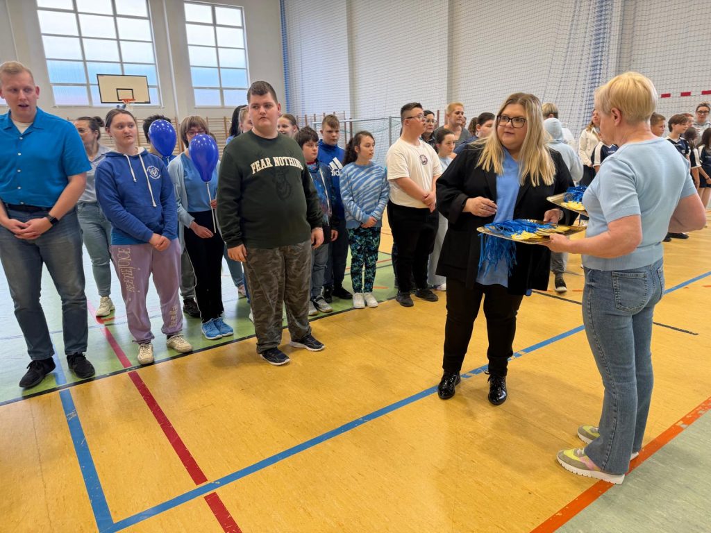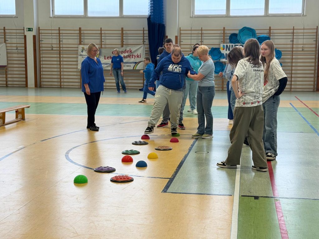9.04.2026 Zespół Szkół Specjalnych w Augustowie wraz ze Stowarzyszeniem Przyjaciół Zespołu Szkół Specjalnych „Wśród Nas” w Augustowie już po raz 15. zorganizowali miejsko – powiatowe obchody Międzynarodowego Dnia Świadomości Autyzmu. W tym roku obchody rozpoczęły się od Niebieskich Igrzysk – integracyjnych zawodów sportowych na hali sportowej przy Szkole Podstawowej Nr 4. Do udziały zaprosiliśmy przedstawicieli Urzędu Miasta Augustów, Starostwa Powiatu Augustowskiego, drużyny ze Szkół Podstawowych nr 2, 3, 4, 6 i Szkoły Społecznej. W roli wolontariuszy wspierali nas uczniowie Augustowskiego Centrum Edukacyjnego oraz Hufca Pracy przy ACE. Największą i najliczniejszą drużynę stanowili uczniowie Zespołu Szkół Specjalnych z autyzmem i niepełnosprawnością intelektualną. Włączyliśmy się w ponad 500 000 społeczność realizującą ogólnopolski projekt Fundacji – Instytut Wspomagania Rozwoju Dziecka. Niebieskie Igrzyska mają na celu propagowanie rzetelnej wiedzy na temat autyzmu, integrację dzieci z autyzmem z rówieśnikami, budowanie więzi poprzez sport, wspieranie osób z różnymi formami niepełnosprawności, możliwość pełnego zaangażowania osób z niepełnosprawnościami w życie społeczne, stworzenie możliwości spotkań osób i lokalnych instytucji wokół jednego celu. Zgodnie z rytem igrzysk rozpoczęliśmy od wysłuchania hymnu – który został specjalnie napisany na to wyjątkowe wydarzenie. Do sportowej rywalizacji zagrzewały nas cheerleaderki z Augustowskiego Centrum Edukacyjnego. Następnie zawodnicy wykonywali szereg konkurencji, mających na celu sprawdzenie swoich możliwości sensorycznych w różnych zakresach. Rywalizacji towarzysz gorący doping, a wszyscy zawodnicy zdobyli pamiątkowe medale i drobne nagrody w postaci zdrowych przekąsek. Szerzenie wiedzy o autyzmie będziemy kontynuować w ramach zajęć edukacyjnych oraz wykonywaniu prac plastycznych na konkurs „Świat Niebieskich”. Działanie było realizowane i współfinansowane przez Gminę Miasto Augustów w ramach zadania publicznego „Razem możemy więcej” realizowanego przez Stowarzyszenie Przyjaciół Zespołu Szkół Specjalnych „Wśród Nas” w Augustowie. Serdeczne podziękowania kierujemy do Pani Anny Karpińskiej, Dyrektor Zespołu Szkolno – Przedszkolnego Nr 4, za użyczenie hali sportowej, pomoc w realizacji zawodów oraz ogromną życzliwość. Wszystkim zawodnikom, którzy przyjęli nasze zaproszenie gratulujemy sportowej postawy oraz otwartości. Mamy nadzieję, że za rok znowu spotkamy się aby szerzyć postawy życzliwości, tolerancji, akceptacji i wzajemnej pomocy osobom neuroróżnorodnym, których jest coraz więcej w naszym społeczeństwie.
