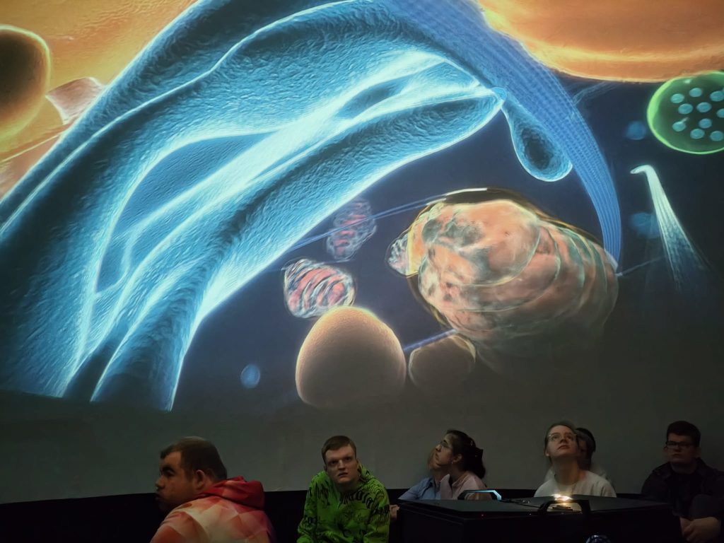 14.04.2026 mieliśmy okazję być w niezwykłym kinie. Nasza sala gimnastyczna zamieniła się w niezwykłą salę kinową. W specjalnym namiocie mieliśmy okazję oglądać specjalnie dla nas wybrane filmy. Zostaliśmy podzieleni na 3 grupy wiekowe. Wszystkie filmy wpisywały się w Tydzień zdrowia i dotyczyły funkcjonowania naszych organizmów. Najmłodsi oglądnęli film „Przyjaciele – w organizmie człowieka”, trochę starsi – „Mój organizm”, a najstarsi zgłębili wiedzę o wnętrzu naszego ciała z poziomu najmniejszych „Komórek!”. Filmy sferyczne – to niezwykłe emocje oraz nieznany dotąd świat w sferycznym kinie pod kątem 360º. Dzięki tym wyjątkowym seansom mogliśmy poznać siebie, odkryć niepowtarzalne widoki z głębi naszego ciała, przenieść się do wnętrza człowieka poznając jego tajemnice. Przedsięwzięcie zostało zorganizowane przez Stowarzyszenie Przyjaciół Zespołu Szkół Specjalnych „Wśród Nas” w Augustowie, w ramach realizacji zadania publicznego Gminy Miasta Augustowa „Razem możemy więcej”.